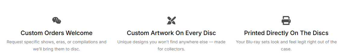 From classic TV shows to iconic wrestling events and legendary concerts, our custom Blu-rays are made to last — and to look as good on your shelf as they do on your screen.